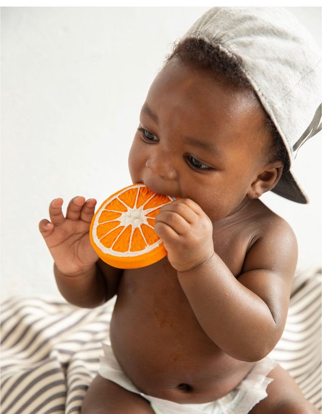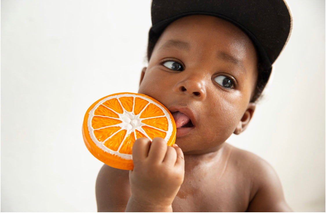 Clementino the Orange is a fruit-shaped baby teether that will stimulate babies’ senses while soothing little gums. Introduce kids into a healthy lifestyle from a young age! Did you know that eating oranges is highly nutritional and beneficial for health? It will become babies and kids’ favorite teether, bath toy and sensory play toy.