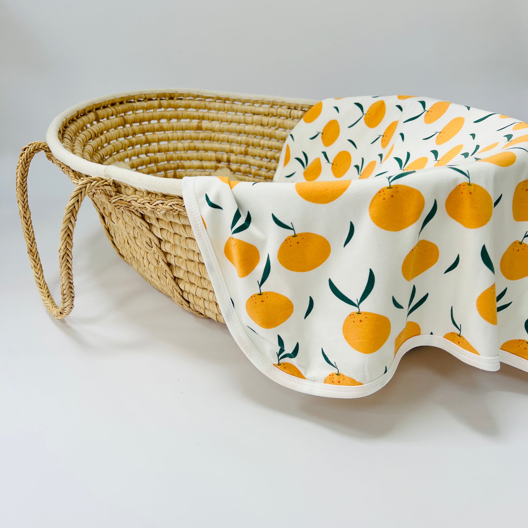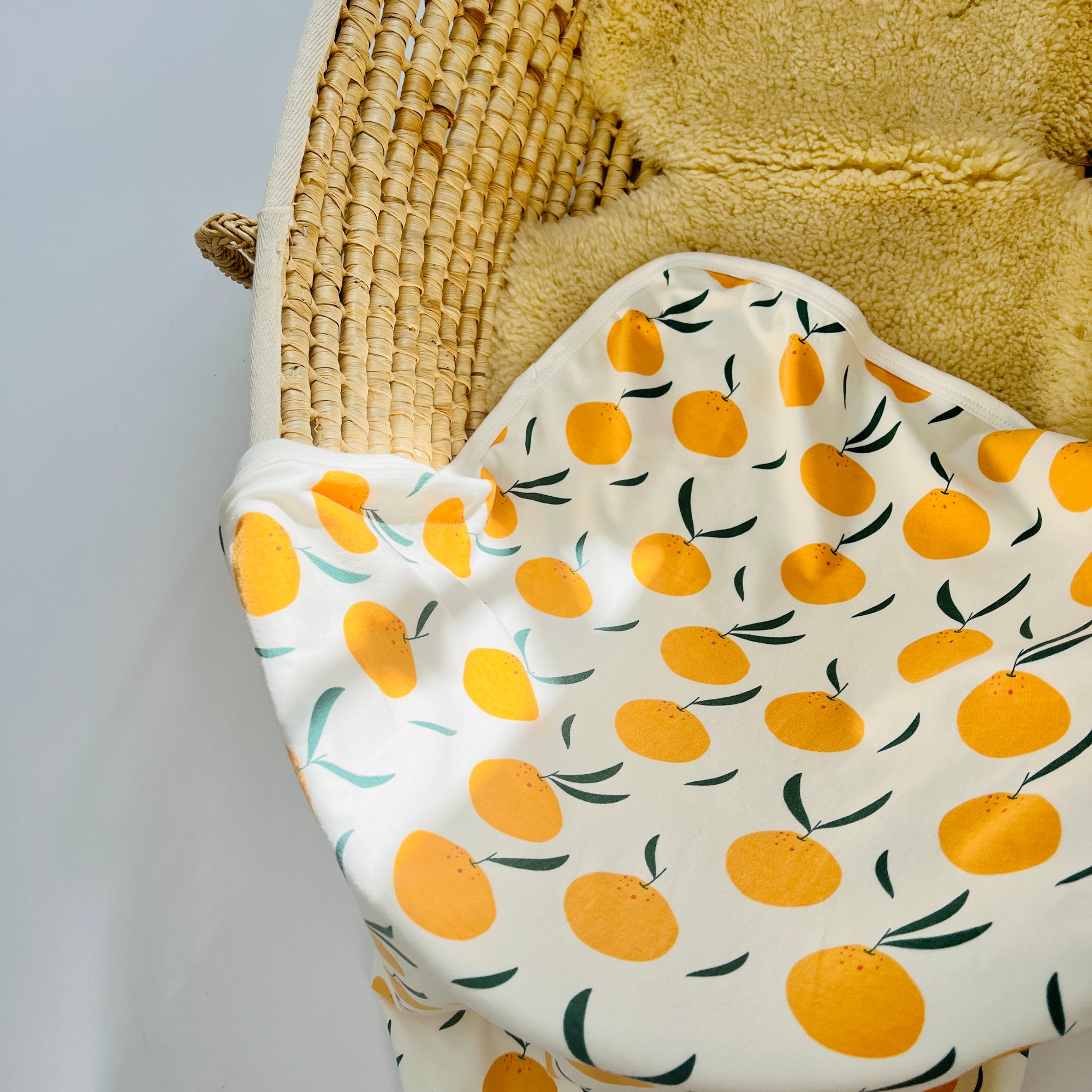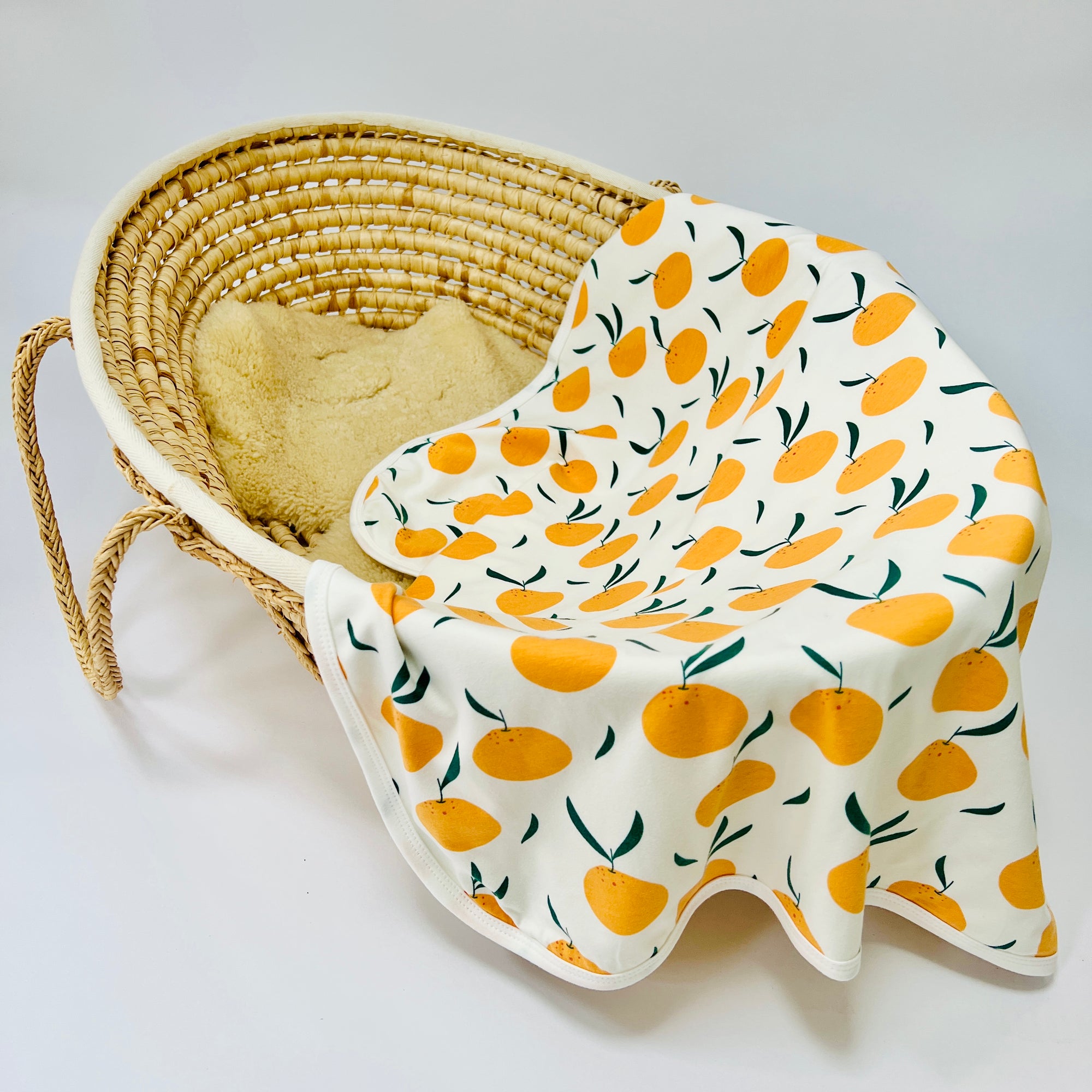 Eddie & Bee organic cotton Baby Pram/ Cot Blanket in Cream " Clementine grove " print.