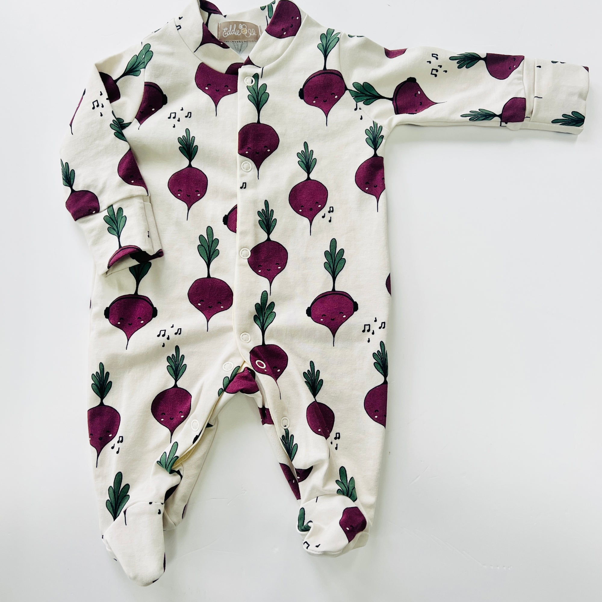 Newborn and 0-3 Months sizes come with built in scratch mitts.