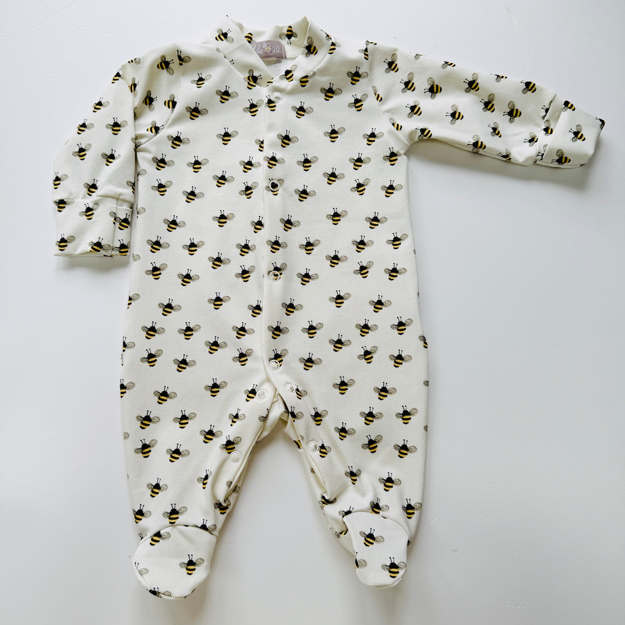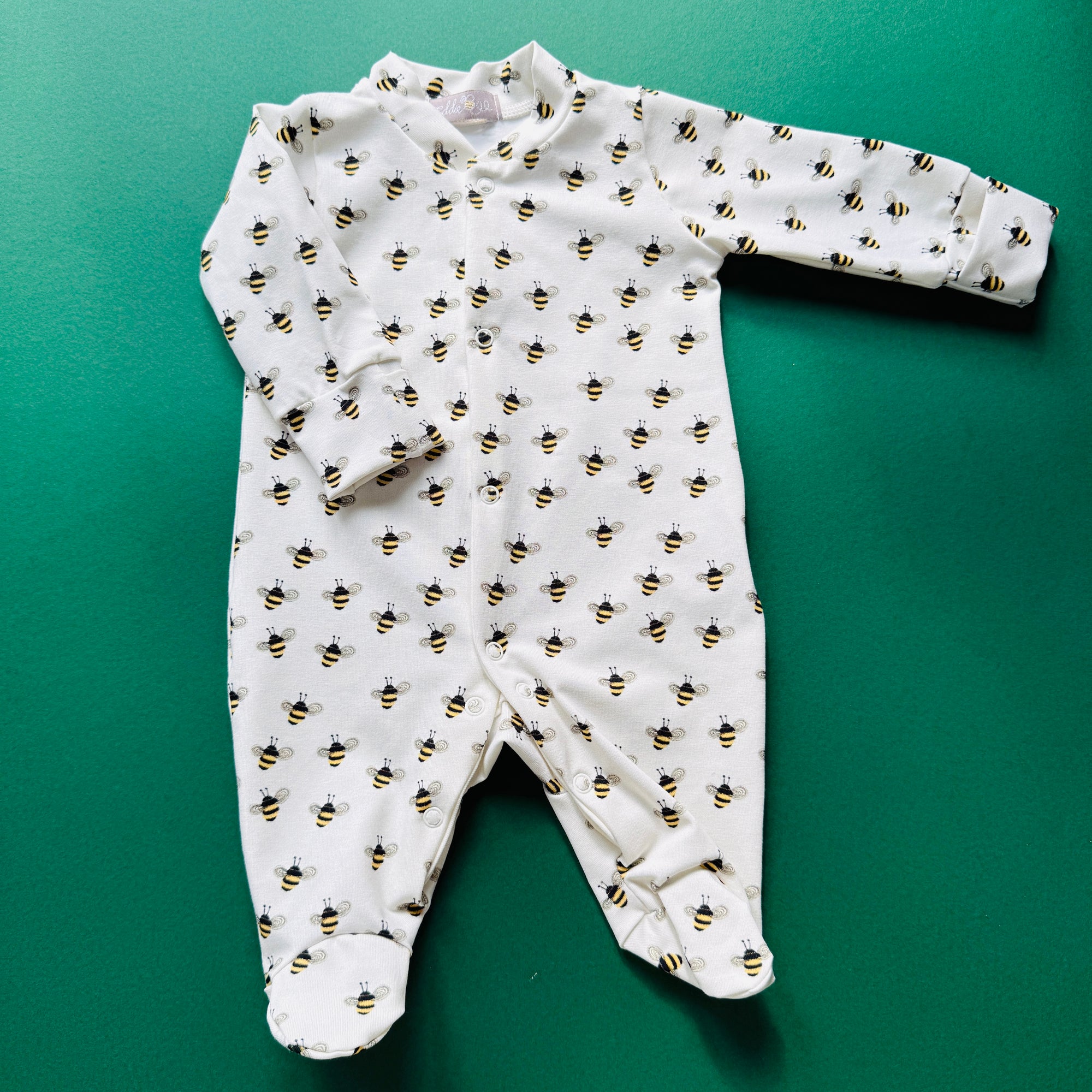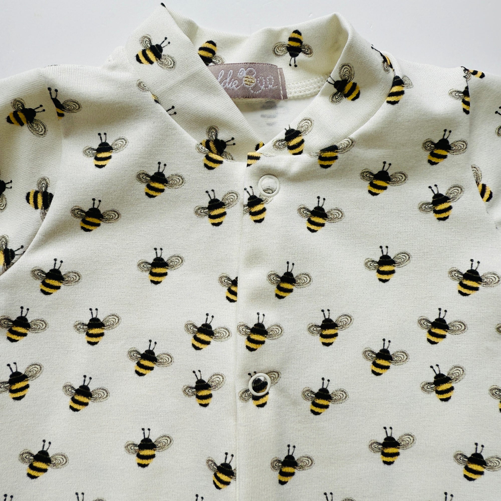 Eddie & Bee organic cotton Baby sleepsuit in Cream " Bees " print.
