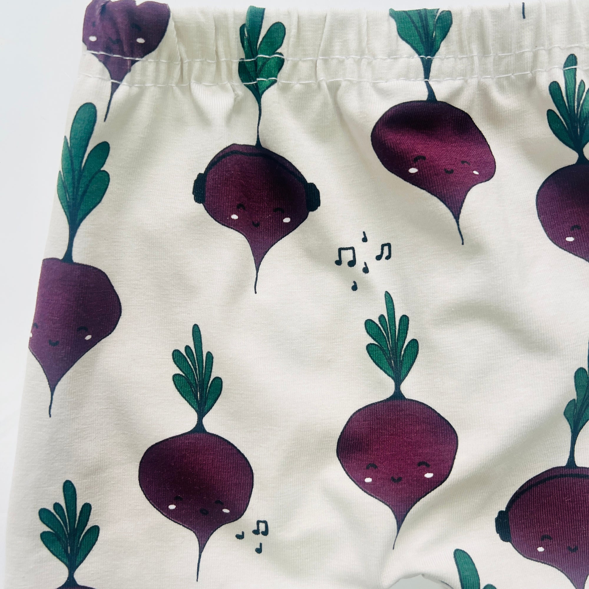 Super soft organic cotton leggings in cream "Beetroot" print.