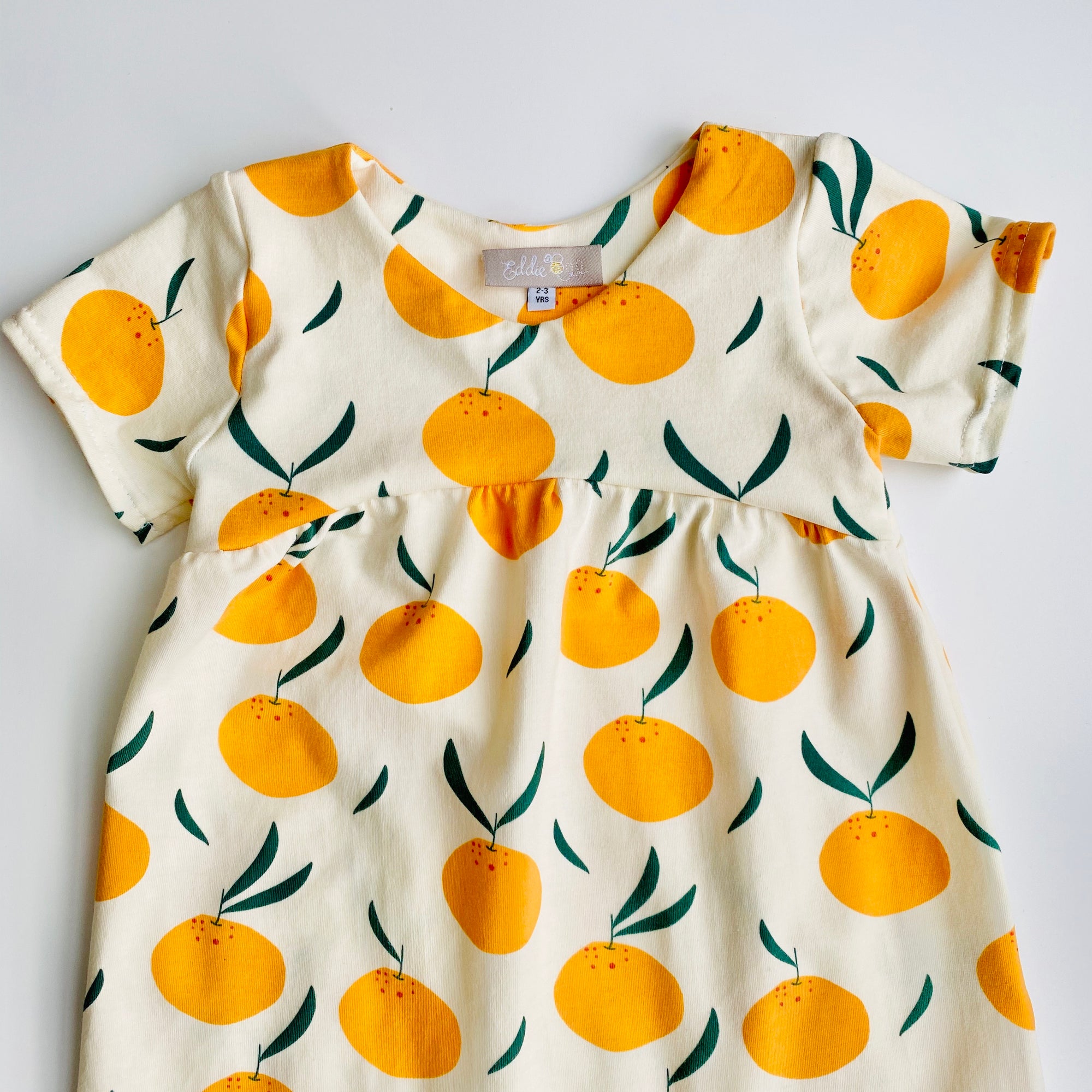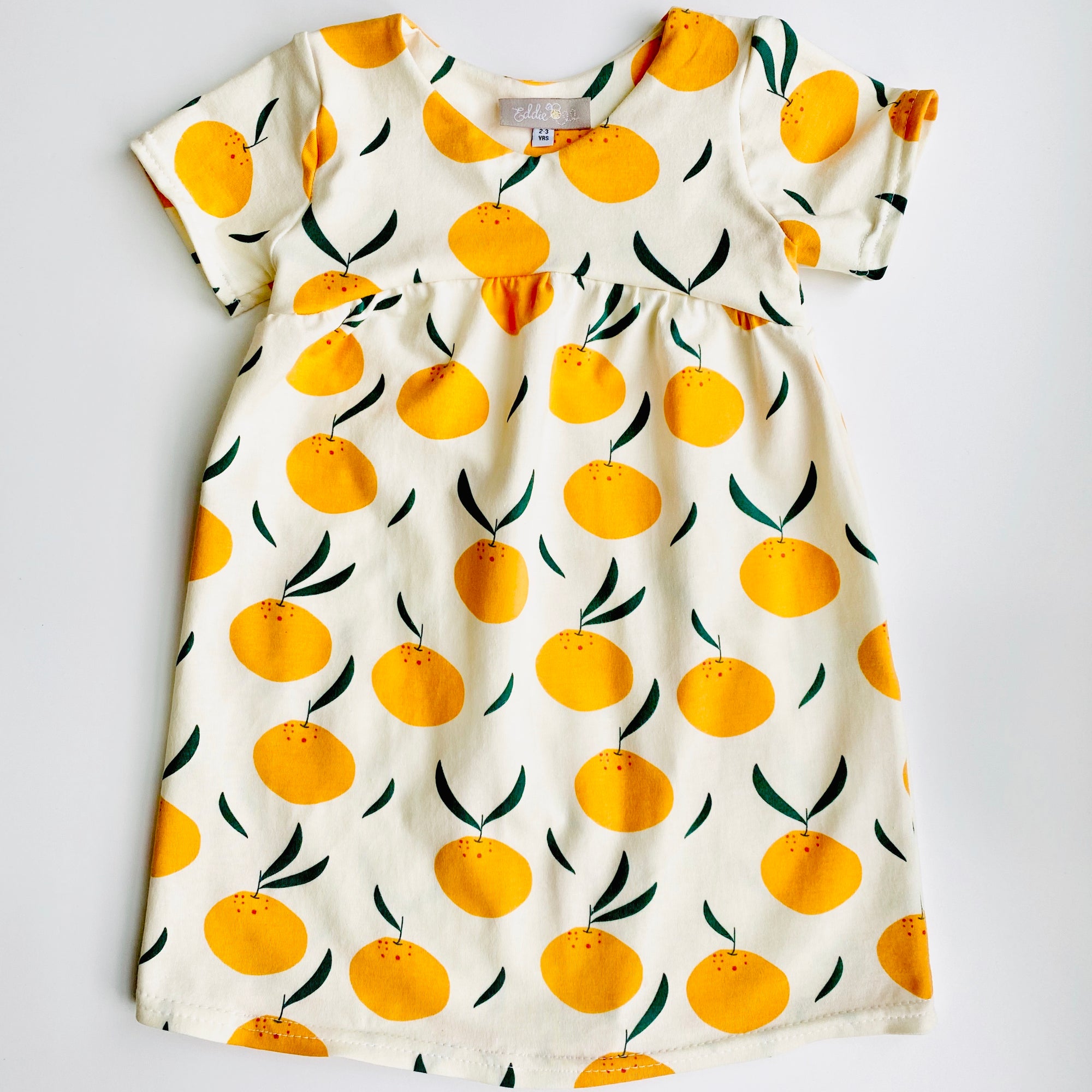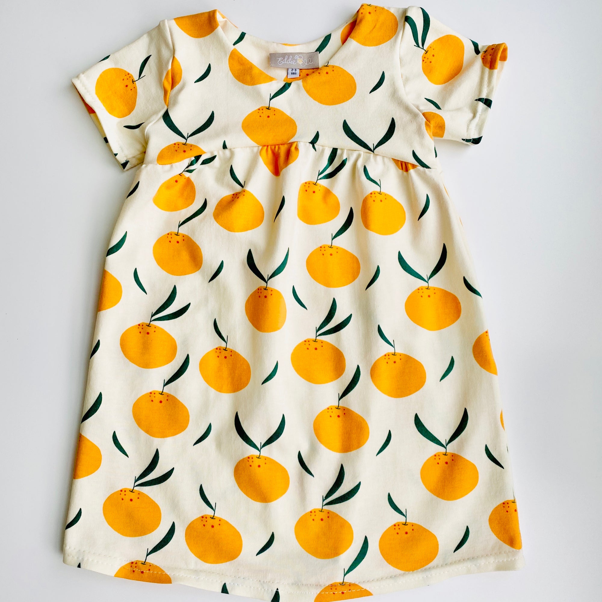 The fabric is produced from 95% organic cotton and 5% spandex and printed with low impact dye. To keep your dress looking new, please wash it inside out.