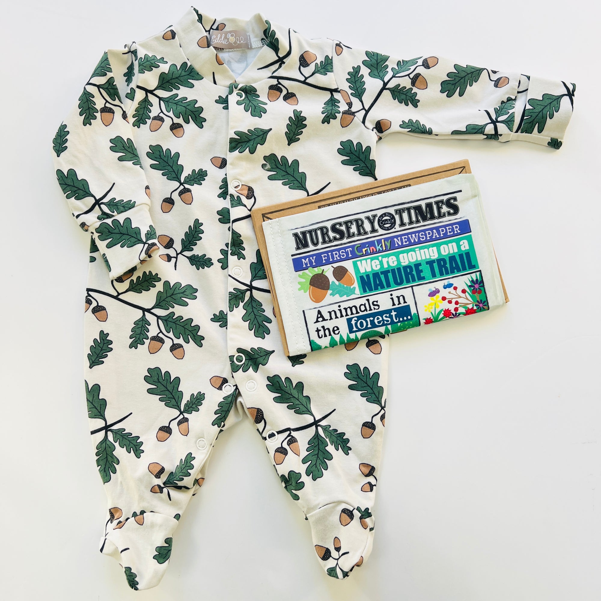 Organic cotton sleep suits are not only soft and comfortable for a baby's delicate skin but also a great choice for environmentally-conscious parents. The Little Acorn theme adds a festive touch, making it perfect for the holiday season.