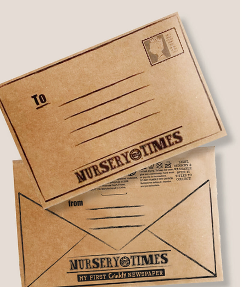 Dimensions approx: 30cm x 20cm. CE tested and machine washable. A practical, lightweight cloth book with crinkly pages. A great sensory toy. A unique gift. Each newspaper is packed in a gifting envelope to add 'To' and