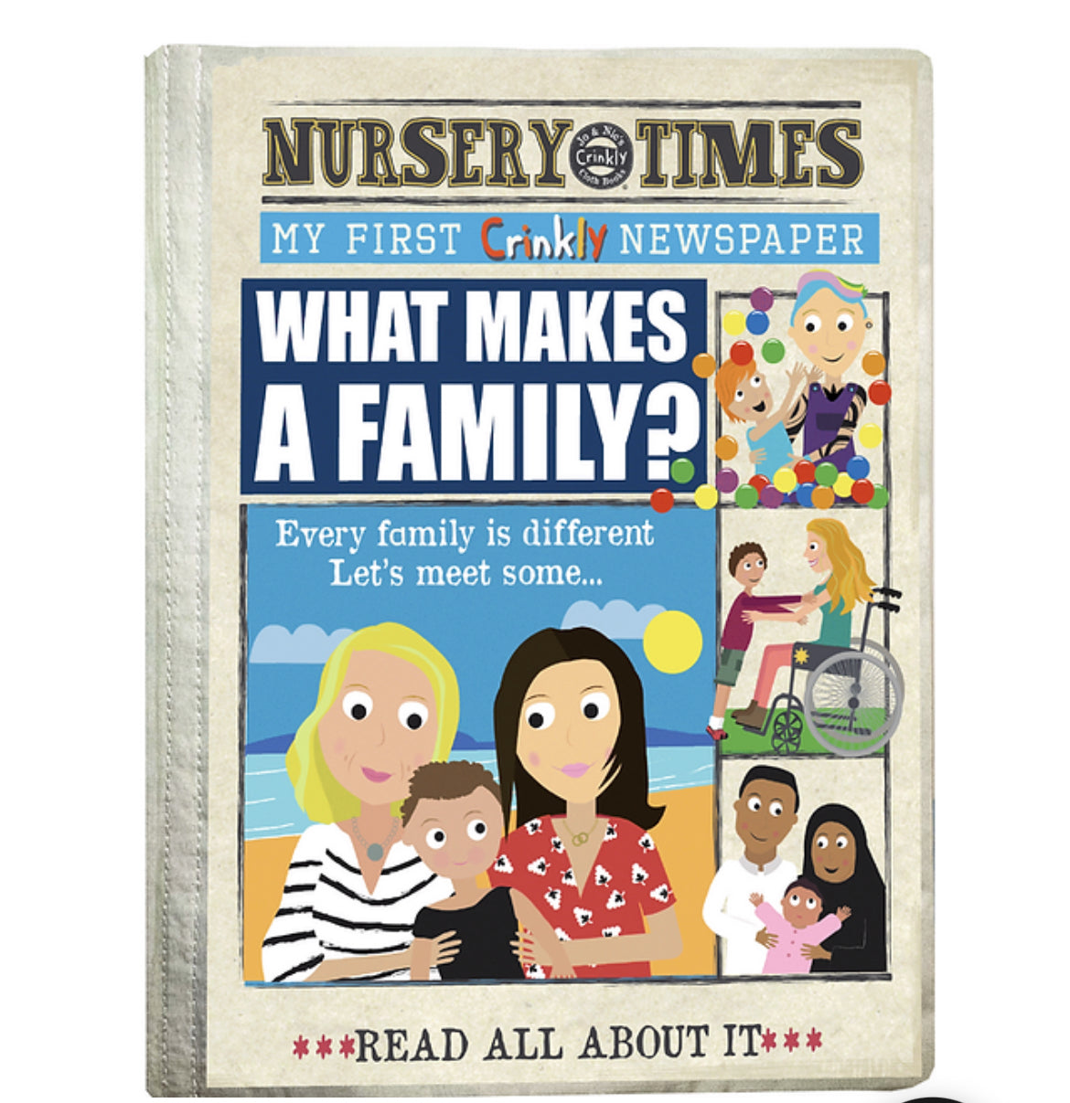 Nursery Times Crinkly Newspaper. What Makes A Family. A new titles showing diversity within the family unit.
