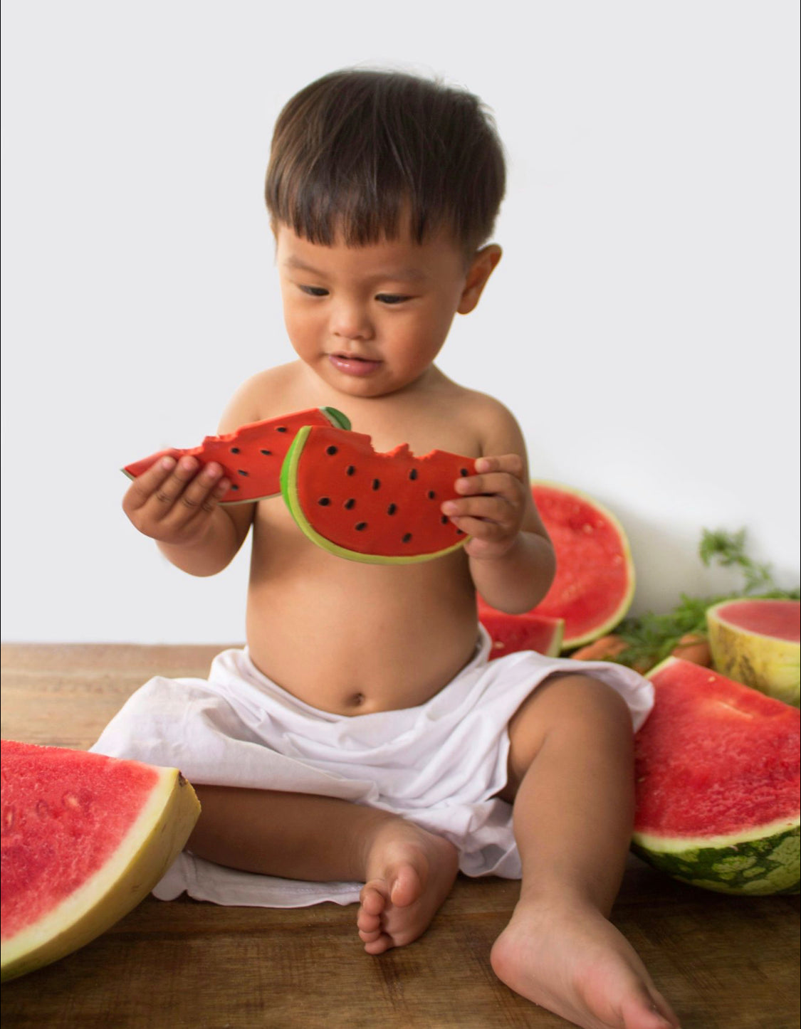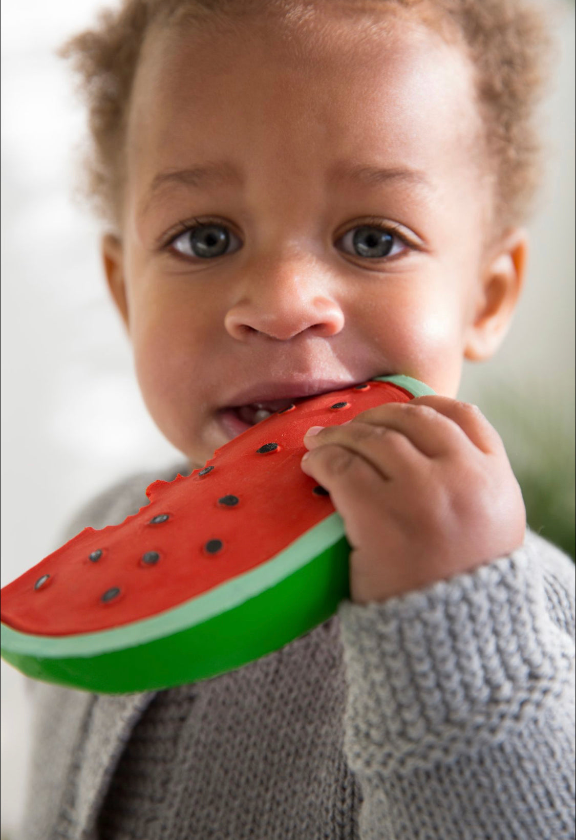 Wally the Watermelon is a fruit-shaped baby teether that will stimulate babies’ senses while soothing little gums. Its realistic textures will develop kids’ sense of touch. It is carefully hand painted with natural pigments, making it completely safe for little ones. Did you know that including watermelon in food helps keep 90% of water in human bodies? Introduce kids into a healthy lifestyle from a young age!