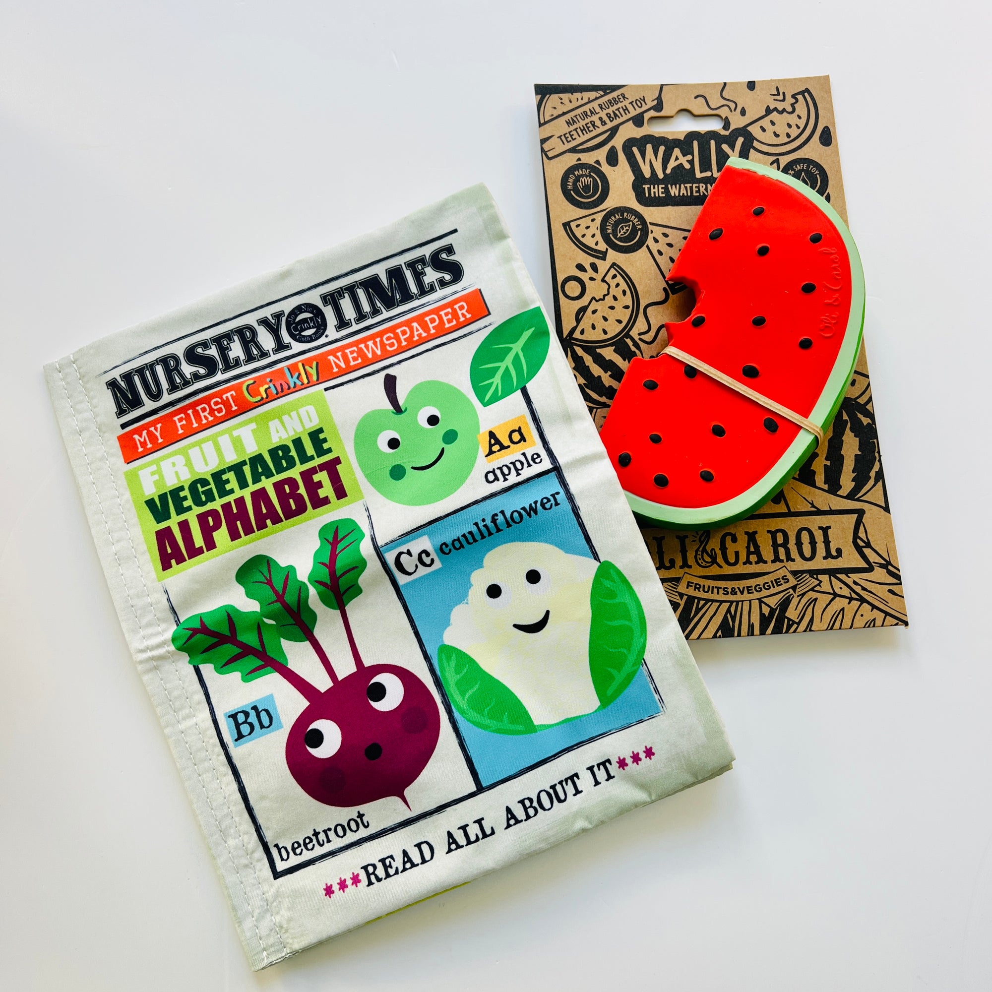Pairing it with a Fruit and Veg crinkly newspaper makes it a really special present. The crinkly texture is engaging for babies/ Toddlers and contributes to their sensory development.